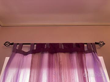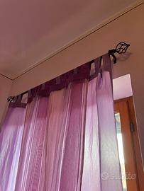 In perfette condizioni, vendo per sostituzione: - 2 tendoni viola in tafta - 2 tendoni viola righe tonalità del viola - 2 bastoni allungabili a piacimento in ferro battuto
