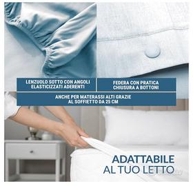 IN 100% PURO COTONE MORBIDO CERTIFICATO OEKO-TEX, RESISTENTE E DUREVOLE NEL TEMPO: Il completo letto mantiene la sua qualità nel tempo, assicurando un riposo sempre fresco e avvolgente, senza l'utilizzo di materiali sintetici. I coloranti e i trattamenti del tessuto, testati e certificati in laboratorio, garantiscono resistenza ai lavaggi, senza sbiadire o perdere morbidezza