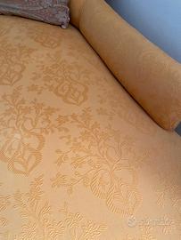 Dormeuse '800 restaurata, tappezzeria in cotone damascato color ocra.