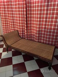 Dormeuse di origine coloniale indiana, in ottimo stato, solida, utilizzabile come divano oppure come letto aggiungendo cuscini o materasso. Lunghezza totale 195 cm, larghezza 95 cm e altezza da terra 42 cm. Ritiro in loco (zona Casale Monferrato).