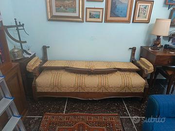 Divano del 900 in legno rivestito di broccato, girabile diventa divano letto singolo. Mi scuso se on metto un prezzo accetto offerte