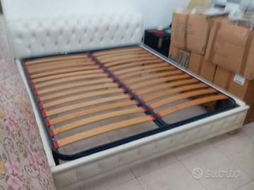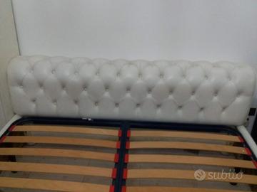 DORMEUSE E STRUTTURA LETTO MATRIMONIALE CAPITONNÉ IN PELLE COLORE BIANCO. LA RETE A DOGHE VISIBILE IN FOTO NON e' INCLUSA