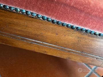 Bellissima dormeuse antica fine 800 in legno di noce con rivestimento in velluto rosa antico fissato con borchiette in metallo