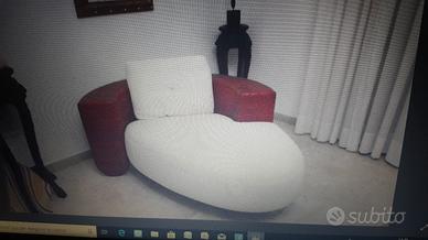 dormosa di BONACINA con schienale di cuoio intrecciato bordeaux. molto ampia per angolo relax