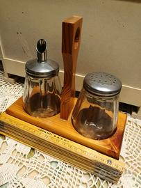 DOSA ZUCCHERO E SPARGICACAO A VELO per caffè e cappuccino Il DOSA ZUCCHERO E SPARGICACAO A VELO IN VETRO E TAPPO IN ACCIAIO SONO ALLOGGIATI IN UN CESTO IN LEGNO CON MANICO . Larghezza 21 cm, altezza 18 cm
