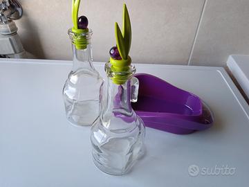 Dosatore olio e aceto in veto diametro altezza con vassoietto e tappi in plastica. Nuovi mai usati Disponibili 2 pezzi