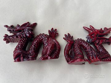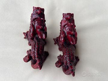 statuette decorative raffiguranti draghi cinesi, in resina rossa, utilizzate spesso per il Feng Shui come simboli di fortuna e prosperità