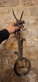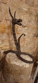 antico drago in ferro battuto con anello per legare i cavalli al muro, pezzo risalente agli inizi del secolo scorso forgiato a mano dimensioni 55 cm altezza compreso anello 16 cm larghezza anello 20 cm profondità prezzo trattabile
