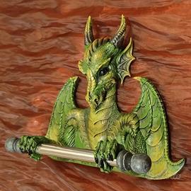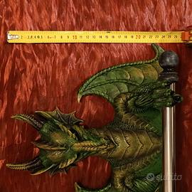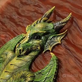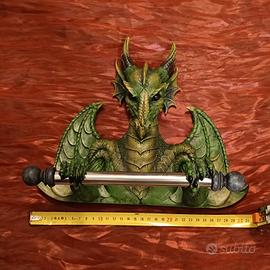 Strepitoso #drago scolpito in #resina di alta qualità! Una volta appeso (ha 2 fori sul retro) dà un tocco #gotico all'ambiente ed è al servizio del suo padrone, servendogli qualunque cosa si possa collocare sul suo supporto di acciaio di 30 cm: