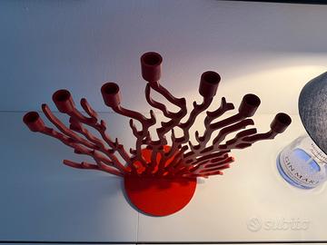 Vendo questo particolare candelabro da tavolo a 7 candele, modello Tenochtitlan prodotto da Driade e disegnato dal designer Vittorio Locatelli, in fusione di alluminio verniciato di rosso.