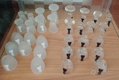 Bellissima scacchiera in cristallo Dal Negro con bicchierini curati nei dettagli e di misure diverse a seconda del pezzo rappresentato. Mai usata se non come complemento d'arredo, vendo per trasloco. Vendita con ritiro diretto a cura acquirente per evitare rotture con la spedizione .