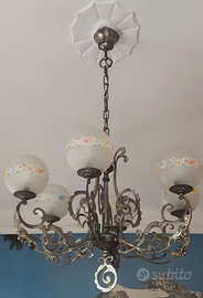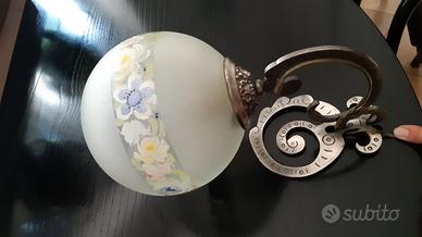 Due applique anni '60 con struttura in metallo color argento e bocce in vetro soffiato di murano dipinte a mano. Se interessati vendo anche lampadario abbinato riportato nelle foto, per un totale di euro 150.