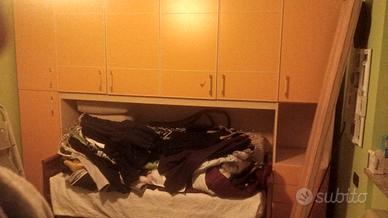 Due armadi smontati. Il primo armadio a ponte color arancio/Noce (senza lettino) misure altezza 245, profondità 60, larghezza 295. Mentre l'armadio bianco è da ufficio misure altezza 265, larghezza 185, profondità 60. Non spedisco. Chi interessato può venire a ritirare i due armadi smontati. Grazie