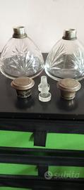 Due bocce porta profumo vintage anni 40 clin vetro lavorato e tappi in argento. Oggetto da collezione.