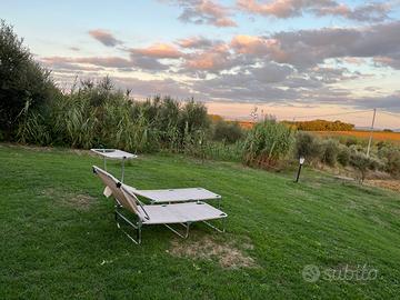 Vendo due brandine pieghevoli beige da giardino o spiaggia. Prezzo per tutte e due.