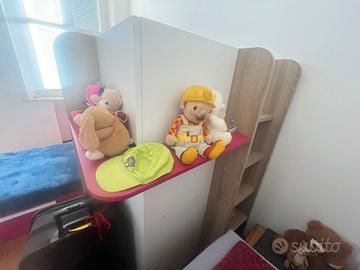 regalo due letti a castello come da foto da smontare e transportare a carico vostro Letto a castello con scrivania integrata 2 x 90 x 190 cm in Pino bianco e turchese SAMUEL e 2materassi90 x 190 cm Rif.83213