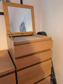 vendo due cassettoni, un settimanale, due comodini Ikea Malm, colore legno.