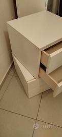 Vendo due comodini quadrati con due cassetti. Colore bianco opaco. Usati pochissimo perché in seconda casa. Misure 47*46 cm altezza 36 cm. Ottima qualità acquistati in negozio Lops a Milano