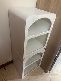 Vendo per inutilizzo due comodini DEGHI, in legno effetto pietra bianchi, due ripiani. Misure 45x40xh55 cm (LxPxH) Ritiro a carico dell’acquirente