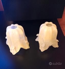 Coppia di coppe in vetro di colore ambra adatte come ricambi per lampadari, applique, lampade da tavolo, lampade da comodino.