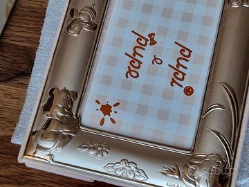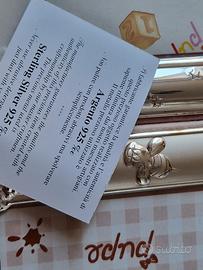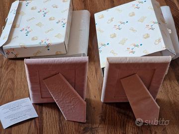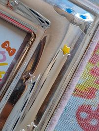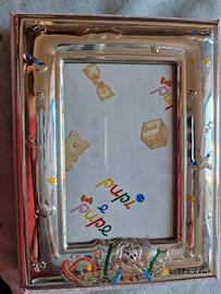 set di due cornici in argento per bambini. Misurano 12,5x10 cm e dietro sono foderate di rosa. Hanno la loro scatola e non sono state mai utilizzate.