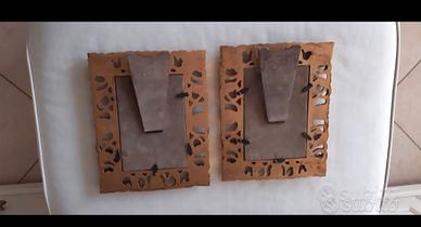 Due cornici Portafoto in legno stile antico con cornice finemente lavorata e dorata.Misure 14x9 internamente e 22x17 esternamente. I prezzo è per entrambe.Pari al nuovo