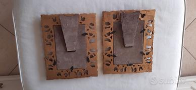 Due cornici Portafoto in legno stile antico con cornice finemente lavorata e dorata.Misure 14x9 internamente e 22x17 esternamente. Il prezzo è per entrambe.Pari al nuovo Vedi altri miei annunci