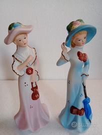 Due Dame in abito Rosa & Azzurro in Ceramica