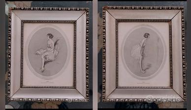 Due splendidi disegni di Lewis Baumer (1870-1963), inchiostro, pastello e gesso su carta grigio chiaro "Satin" e "Tulle" con cornice originale Dimensioni 41 cm 35 cm Consegna a mano contestualmente al pagamento