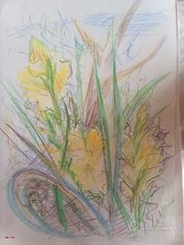 Spontaneità, leggerezza, movimento. Tecnica mista: matita e pastello.