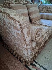 vendo i due divani in stoffa molto eleganti e "imponenti". La struttura è solida e importante. Sono parzialmente graffiati dal gatto sui 4 lati (si possono vedere i particolari dalle foto). Le misure sono: il 3 posti 220lx100px90h il 2 posti 180lx100px90h. Il prezzo tiene conto dei graffi e del ritiro a spese dell'acquirente.