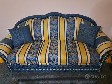 Vendo, per cambio stile arredamento, 2 divani classici di 3 + 2 posti tenuti molto bene...colore blu e giallo oro...