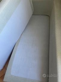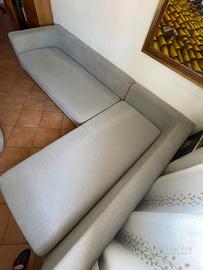 Vendo due divani Chateaux d'Ax da tre posti l'uno. Componibili come in foto. Entrambi di dimensioni 94x195cm ed alti 60cm di cui 10cm da terra. Possono essere combinati tramite gancio e trasformati in divano ad angolo a 5 posti. Tessuto in cotone grigio chiaro. Completamente sfoderabile e lavabile. I 5 cuscini sono rimovibili per rendere la seduta più profonda. Ottime condizioni. Ritiro a domicilio settimo piano Colli Aniene - Roma.