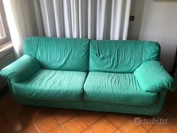 Vendiamo due divani marca Doimo in tessuto alcantara colore verde salvia in buono stato; uno da 3 e l’altro da 2 sedute.