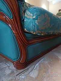 Rivestiti in tessuto resistente con elegante fantasia floreale sui toni del verde e del giallo, con particolari in legno a vista che aggiunge un tocco classico e raffinato.