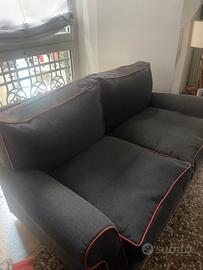 Due divani a due posti di cui uno letto colore grigio con profilo rosso Tessuto cotone con cuscini sfoderabili Lunghezza 150cm Profondità 80cm Altezza 75 cm
