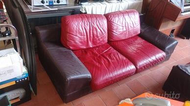 Due divani in pelle buone condizioni colore rosso-marrone seduta rigida 2 e 4 posti misure 215 L x 100 P e 245 L x 100 P "La Bottega del Risparmio" Uta Via Vivaldi