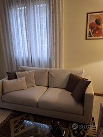 Due divani moderni in tessuto beige, perfetti per soggiorno o salotto. Entrambi presentano linee pulite e design minimalista, con imbottiture comode e struttura robusta. I divani sono usati ma tenuti con molta cura, senza macchie o danni visibili. La tappezzeria è elegante e si adatta facilmente a diversi stili di arredamento. Dimensioni generose, ideali per rilassarsi o ospitare amici e famiglia. Visionabili nelle foto, disponibili sia singolarmente che in coppia.