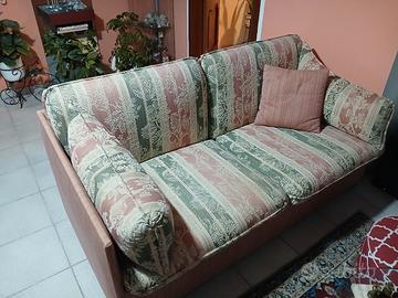 Due divani in tessuto di cui uno diventa un letto matrimoniale. Hanno 40 anni ma sono tenuti bene.