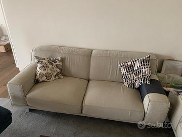 Due divani comodissimi: 3 posti (L.212) e 2 posti (L. 172), colore neutro, tessuto lino, puedi cromati, made in Italy.