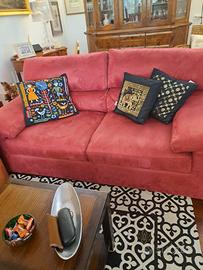 Vendo 2 divani + 1 puff coordinato di poltrone e sofà comodi e ben tenuti, ideali per arredare il soggiorno. Misure: 1,80 x 90 Materiale: Alcantara Stato: usati ma in ottime condizioni, senza difetti evidenti. Incluso un ricambio per il divano color rosso