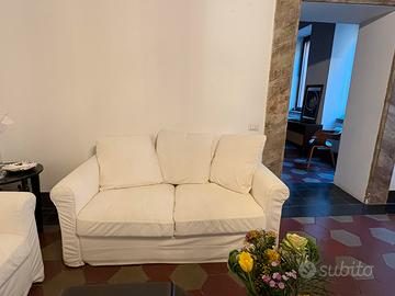 Un divano 3/4 posti con chaise long (con vano contenitore!) e uno 2/3 posti lineari.