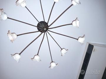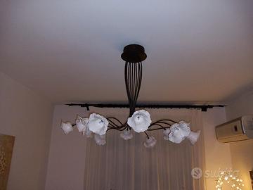 Entrambi i lampadari sono in ferro battuto pitturato color marrone scuro, aventi 12 bocche di lupo bianche a forma di fiore in vera ceramica (fatte a mano) contenenti 12 lampadine bispina a LED (non date in dotazione).