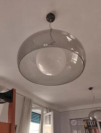Due lampade a sospensione dal design moderno, perfette per illuminare ogni ambiente. - Struttura in vetro e plexiglass. - Colore grigio fumè e trasparente. - diametro 47,5 cm - altezza regolabile