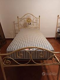 Si vendono DUE Letti ad una piazza n ferro battuto anni 1950, decorazione dipinta a mano, completo di rete ed accessori per il montaggio, valore 600 euro cadauno, tenuti egregiamente con pochi graffi non visibili. Compreso il materasso tipo ortopedico. Dato il volume ed il peso non si effettua la spedizione. RITIRO IN LOCO