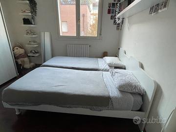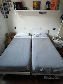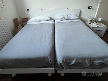 Due letti come nuovi usati poche volte. Letti con doghe fisse, schienale bianco.