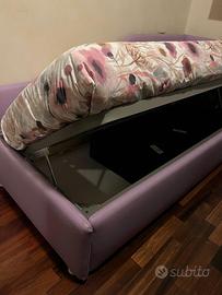 1 letto Twils similpelle, sagomato Dx, con box laterale + materasso ortopedico, ingombro 200x90, testata h. 70, colo Avio; 1 letto Twils similpelle, sagomato Sx, con box laterale + materasso ortopedico, ingombro 200x90, testata h. 85, color Lilla. Materassi a molle h.20, 78x187 Cad. 350€