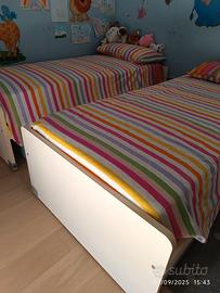 Per cambio arredamento vendo due letti singoli bianchi (80x190) scorrevoli completi di materassi acquistati da poco, reti a doghe e guida metallica da fissare a parete. Sia la struttura dei lettini che i materassi sono in ottime condizioni.