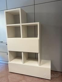n° 02 Librerie Rovere Bianco con cassettone estraibile portacontenitore e anta apribile portacontenitore; il resto dei ripiani sono aperti a vista