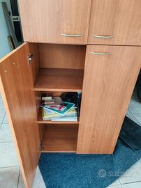 Vendo 2 librerie, una con ante e uno parzialmente aperta in ottimo materiale, ancora in buone condizioni, una sola con un ripiano da riposizionare supportini. Misure 80 x44x195 di altezza. prezzo totale di 2 librerie